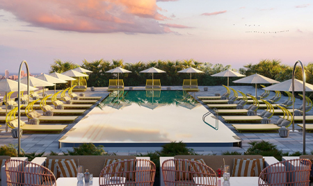 - Restaurante y bar en la azotea de inspiración mundial con servicio junto a la piscina y entrega a pedido a las residencias
