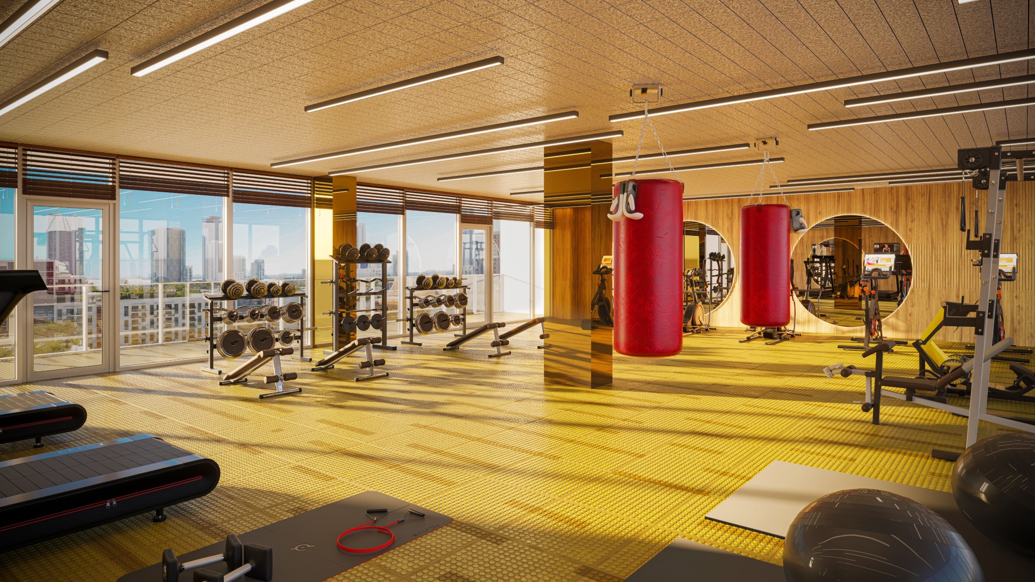 - Gimnasio de última generación totalmente equipado, terraza de yoga al aire libre, estudio de yoga y meditación en el interior, saunas de infrarrojos y cancha de pickle ball